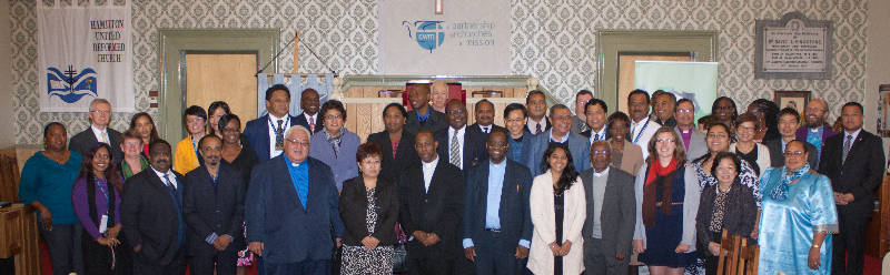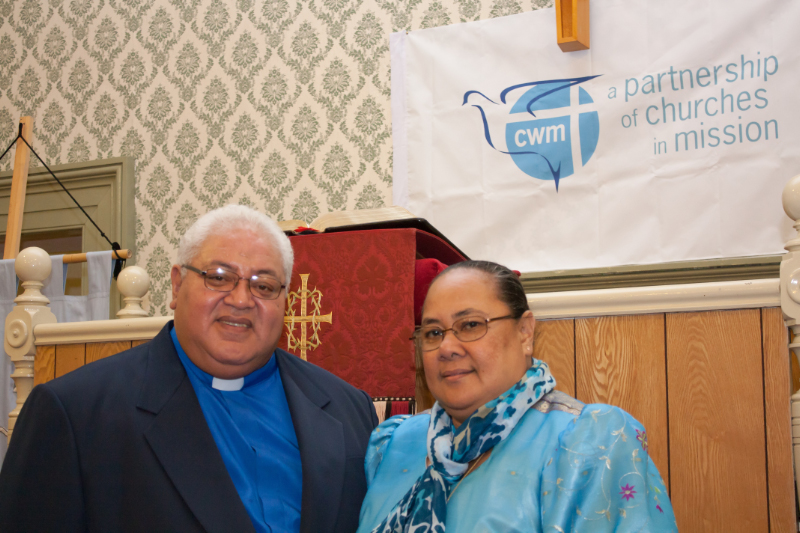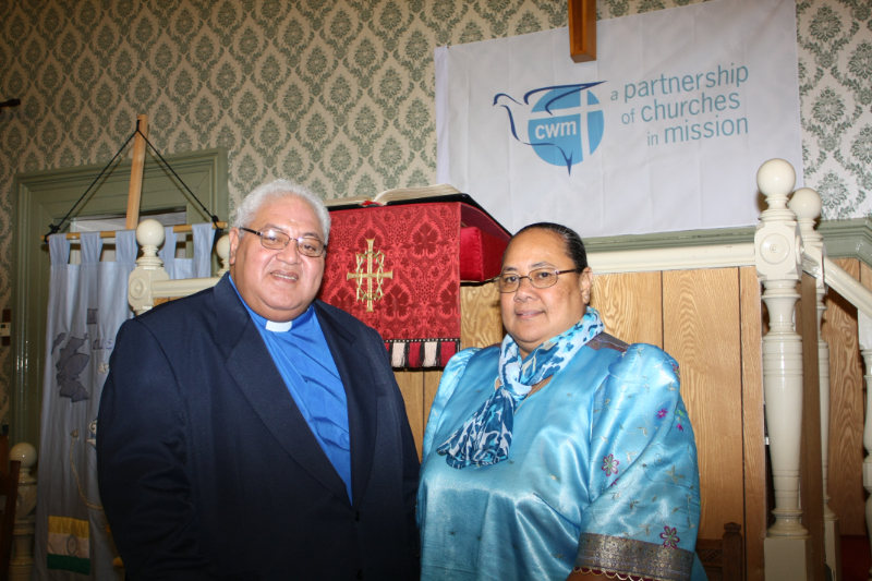 The service was led by the Rev’d. John Humphreys, Moderator of the Scottish Synod of the United reformed Church. The preacher was the Rev’d. Samuel Tikeri Tialavea, Moderator of C.W.M. and member of the Congregational Christian Church in American Samoa. Prayers were led by representatives of the six areas of C.W.M. churches – the Caribbean, East Asia, South Asia, Pacific Africa and Europe. During Worship the 54 delegates dedicated their meeting and witness to serving Christ throughout the world.